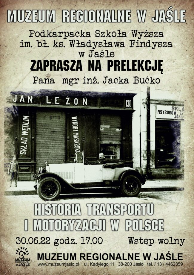 Muzeum Regionalne wraz z Podkarpacką Szkołą Wyższą zaprasza na prelekcję pana Jacka Bućko „Historia transportu i motoryzacji w Polsce”, która odbędzie się 30 czerwca br. o godz. 17.00. Wstęp wolny. Serdecznie zapraszamy!