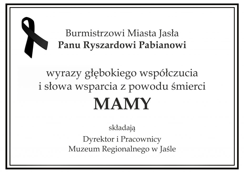 Burmistrzowi Miasta Jasła Panu Ryszardowi Pabianowi