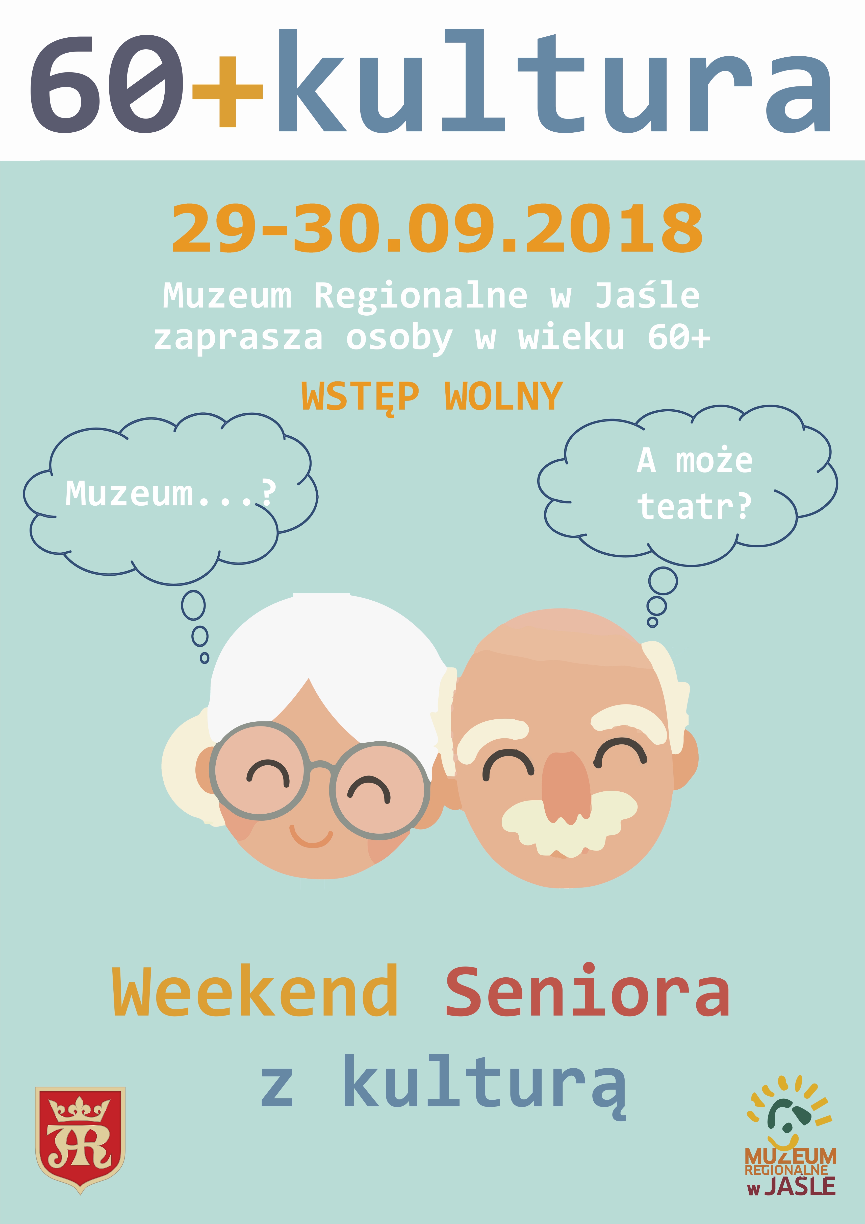 Muzeum Regionalne w Jaśle włącza się w ogólnopolską akcję 60+kultura – weekend Seniora z Kulturą. Zapraszamy osoby w wieku 60+ do odwiedzenia jasielskiego muzeum w dniach 29-30 września 2018 roku. Wstęp wolny.