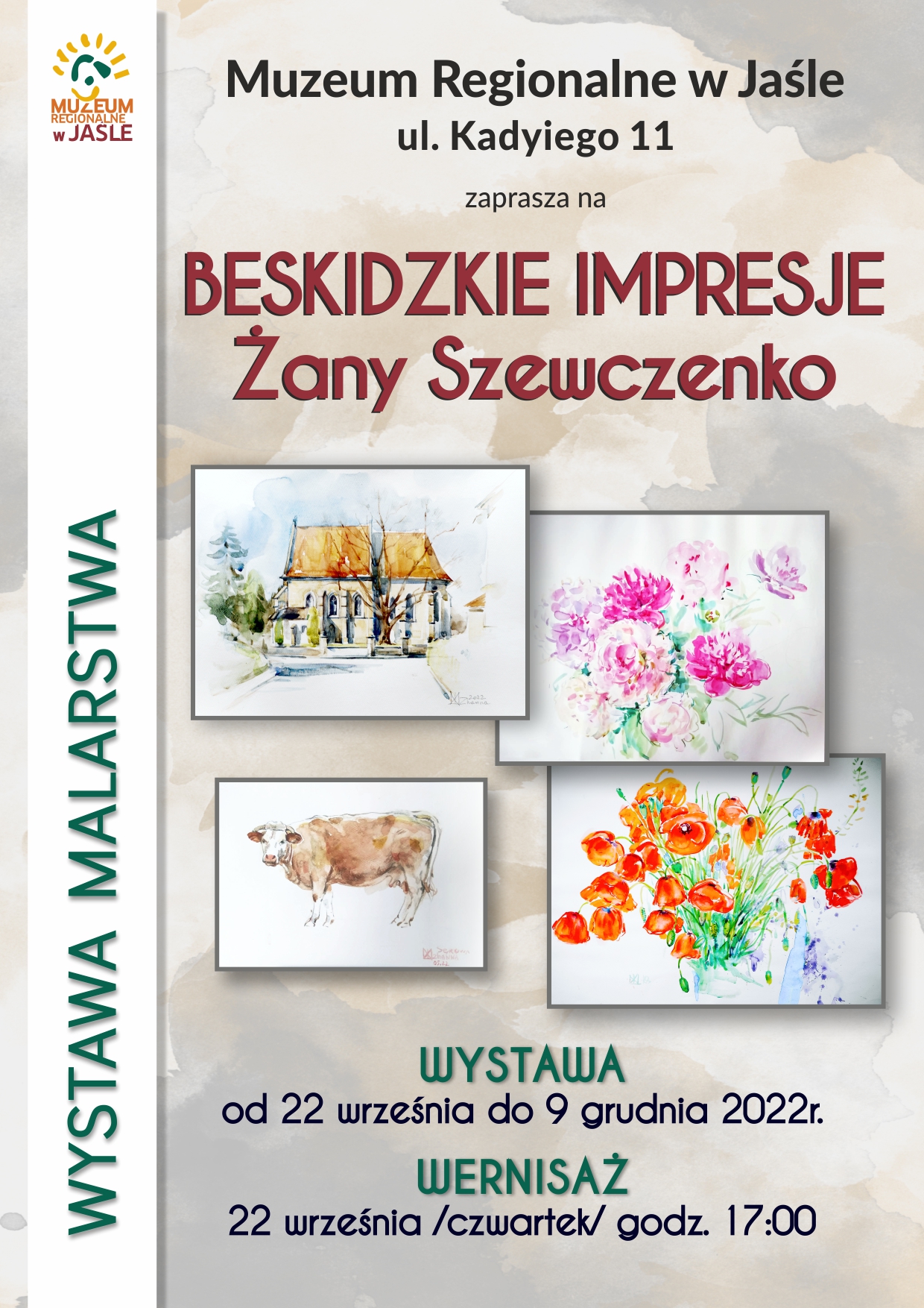 Serdecznie zapraszamy na otwarcie wystawy malarskiej Pani Żany Szewczenko, niezwykłej artystki z Ukrainy, które zaplanowane jest na 22 września, na godz. 17:00 w Muzeum Regionalnym im. Stanisława Kadyiego /galeryjka na parterze/.