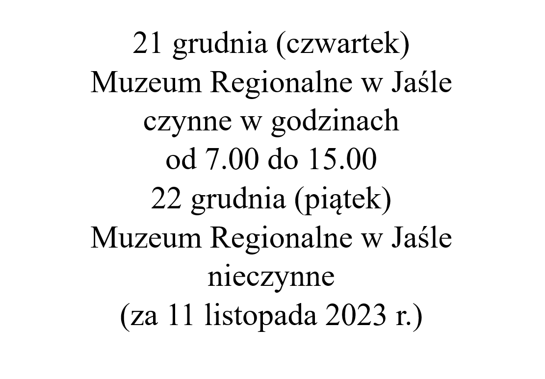 Godziny otwarcia Muzeum w dniach 21-22.12.2023 r.