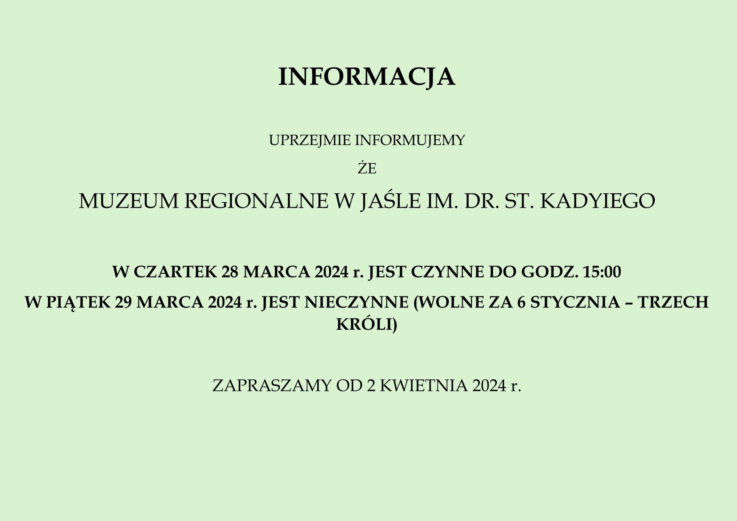 Informacja dot. godzin otwarcia 28-29.03.2024 r.