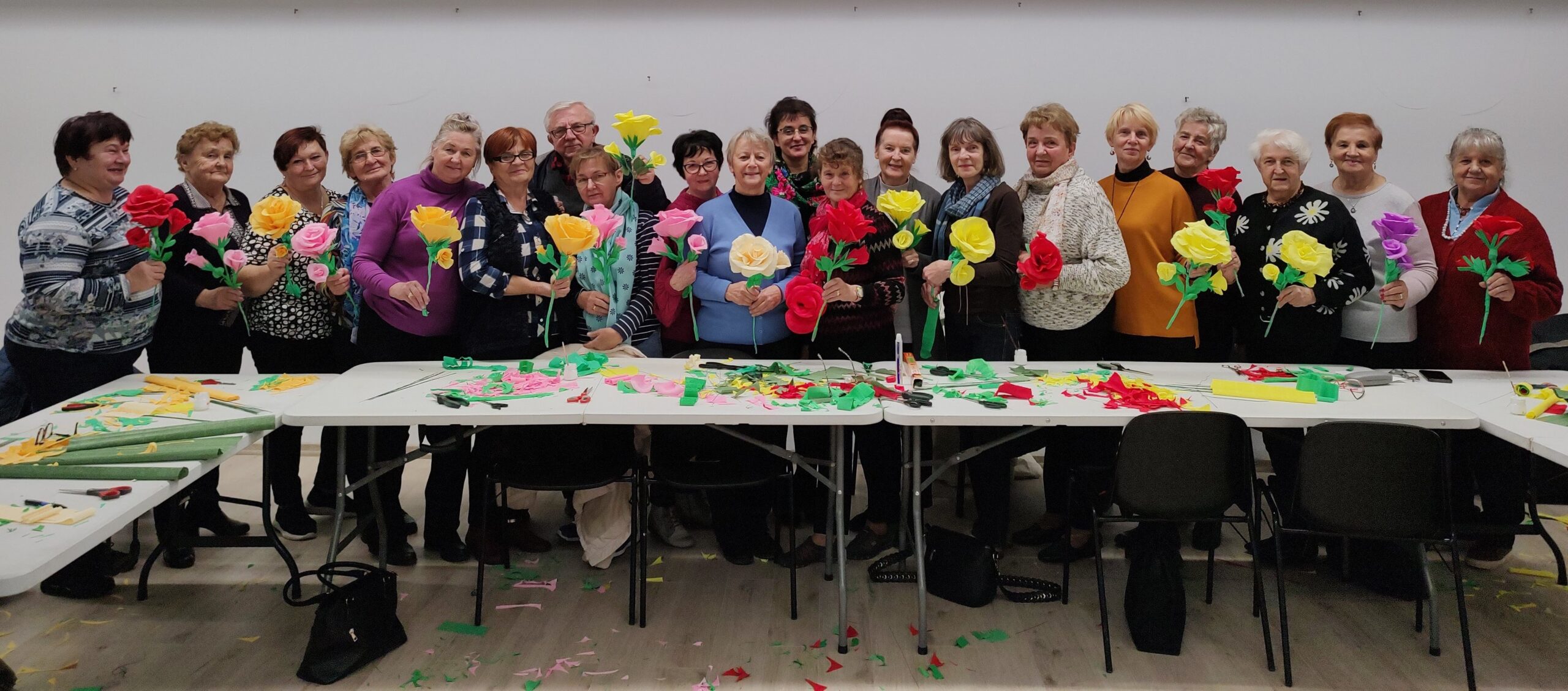 W dniu 6 października gościliśmy panie z klubu seniora z Tarnowca obok Tarnowa, które pod przewodnictwem instruktorki, znakomitej jasielskiej bibułkarki Pani Renaty Górki tworzyły przepiękne kompozycje kwiatowe.