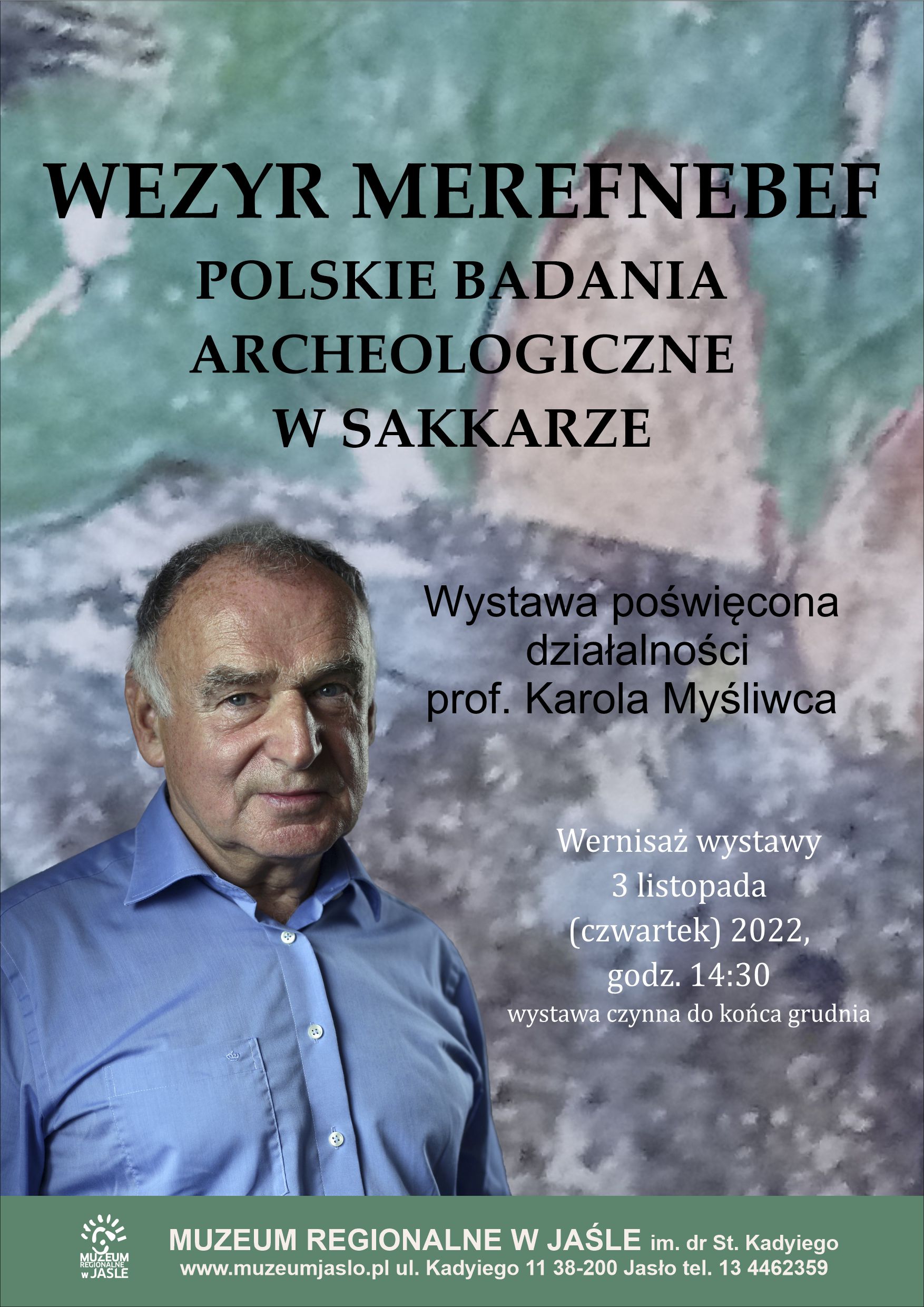 Sakkara to najstarsza i najbardziej elitarna część nekropolii starożytnego miasta Memfis. Polsko-Egipska Misja Archeologiczna prowadzi badania archeologiczne, nieprzerwanie od 1996 roku, na obszarze położonym na zachód od najstarszej piramidy schodkowej faraona Neczericheta – znanego powszechnie pod imieniem Dżeser. Pomimo wieloletnich badań archeologicznych na terenie Sakkary zachodnia część uważana była przez naukowców za obszar pozbawiony znaczenia. „Natomiast ja od samego początku byłem przekonany, że po zachodniej stronie, która w starożytnym Egipcie była przewidziana dla zmarłych, musi być ważna część nekropolii. Wszyscy odradzali mi rozpoczęcie tych wykopalisk, kiedy je rozpoczynaliśmy w 1997 r. Jednak moje przekonanie było takie, że dokonamy tutaj bardzo ważnych odkryć” – wspomina prof. Karol Myśliwiec. Jego przeczucia doprowadziły do odkrycia między innymi nekropoli dworzan z czasów Starego Państwa i założonego w tym samym miejscu cmentarza dla mieszkańców Memfis z Okresu Późnego i Ptolemeskiego. Najwspanialszym odkryciem archeologicznym dokonanym przez Polsko-Egipską Misję Archeologiczną pod kierownictwem prof. Karola Myśliwca był grobowiec Merefnebefa wezyra władcy Starożytnego Egiptu Userkare z VI dynastii. „Gdy Merefnebef został wezyrem, ściany jego prawie ukończonej kaplicy grobowej były pokryte pięknymi, wielobarwnymi reliefami przedstawiającymi właściciela z rodziną i służbą w czasie ceremonii i codziennych czynności. Grobowiec nie był jednak dość okazały dla wezyra. Dlatego zaczęto przebudowę; w ostatecznej, niezwykłej formie, skalną kaplicę z dziedzińcem i portykiem wieńczyła imponująca mastaba. Z mastaby przetrwały jedynie niewielkie fragmenty, ale kaplica jest świadectwem kunsztu starożytnych rzeźbiarzy i malarzy.” „Unikatowe płaskorzeźby i malowidła dekorujące ich ściany należą nie tylko do arcydzieł sztuki, lecz także stanowią cenne źródło historyczne, rzucające nowe światło na jeden z „ciemnych okresów” państwa faraonów, które po raz pierwszy zaczyna chylić się wówczas ku upadkowi z powodu osłabienia władzy centralnej” – opisywał wnętrze m.in. grobowca Merefnebefa prof. Karol Myśliwiec. Wnętrze wspaniałego zabytku z uwagi na kruchość materiału z którego zostało wykonane nie jest dostępny dla zwiedzających, dlatego warto odwiedzić prezentowaną w Muzeum wystawę, aby chociaż przez barwną fotografię móc poczuć piękno i kunszt starożytnych artystów i rzemieślników.